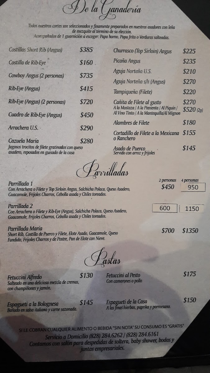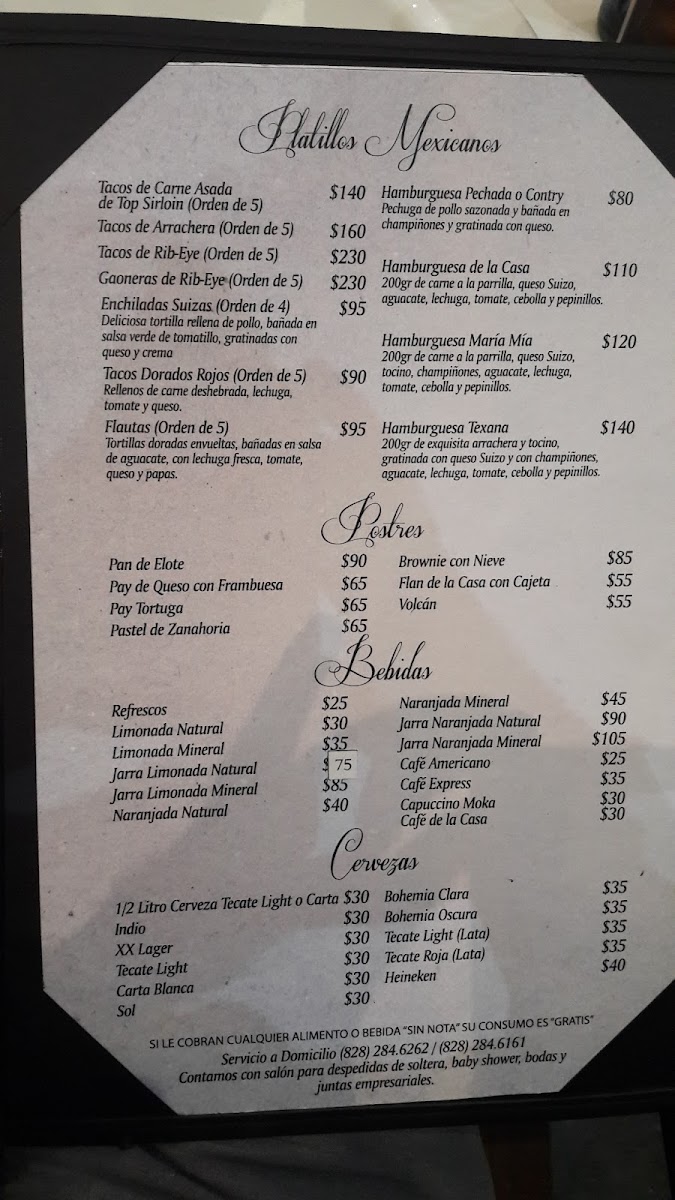 Maria Mia, nestled in Cadereyta Jiménez, offers a refined blend of Mexican and seafood cuisine that truly delights. Their Del Mar selections shine with dishes like Camarones a la Diabla and Salmón Zarandeado, each served with flavorful rice and vegetables, showcasing fresh, bold ingredients. The pasta options, including the creamy Fetuccini Alfredo and rich Espagueti a la Boloñesa, balance Italian influence with Mexican flair.